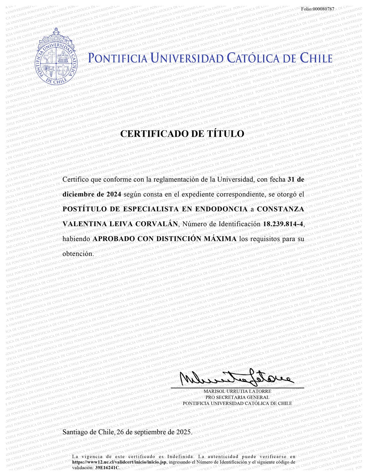 - Especialidad en Endodoncia - Pontificia Universidad Católica de Chile